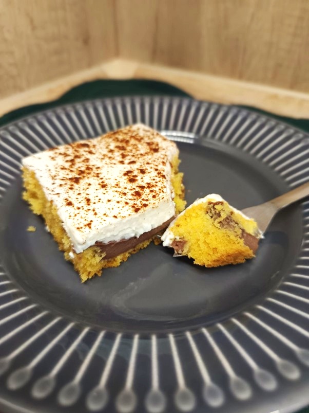 Tento dezert se peče ve spoustě rodinách, ale často jsem byla svědkem toho, že se vedou debaty o množství surovin, popř. o správném postupu. Nevím, který je ten správný, ale takhle ho peču já a vždy zmizí rychlostí blesku. Buchta je nadýchaná a dlouho vláčná použitím pudinku a krému.