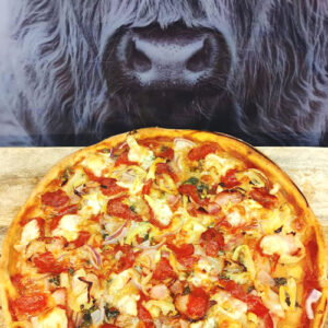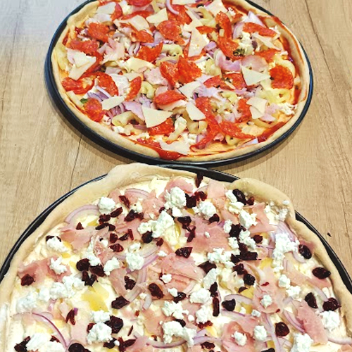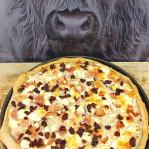 Pizza s čerstvým kozím sýrem a kousky brusinek
