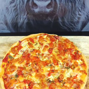 Chilli pizza – sugo ochuceno sušenými chilli papričkami, pár kousků ostrého pálivého salámu